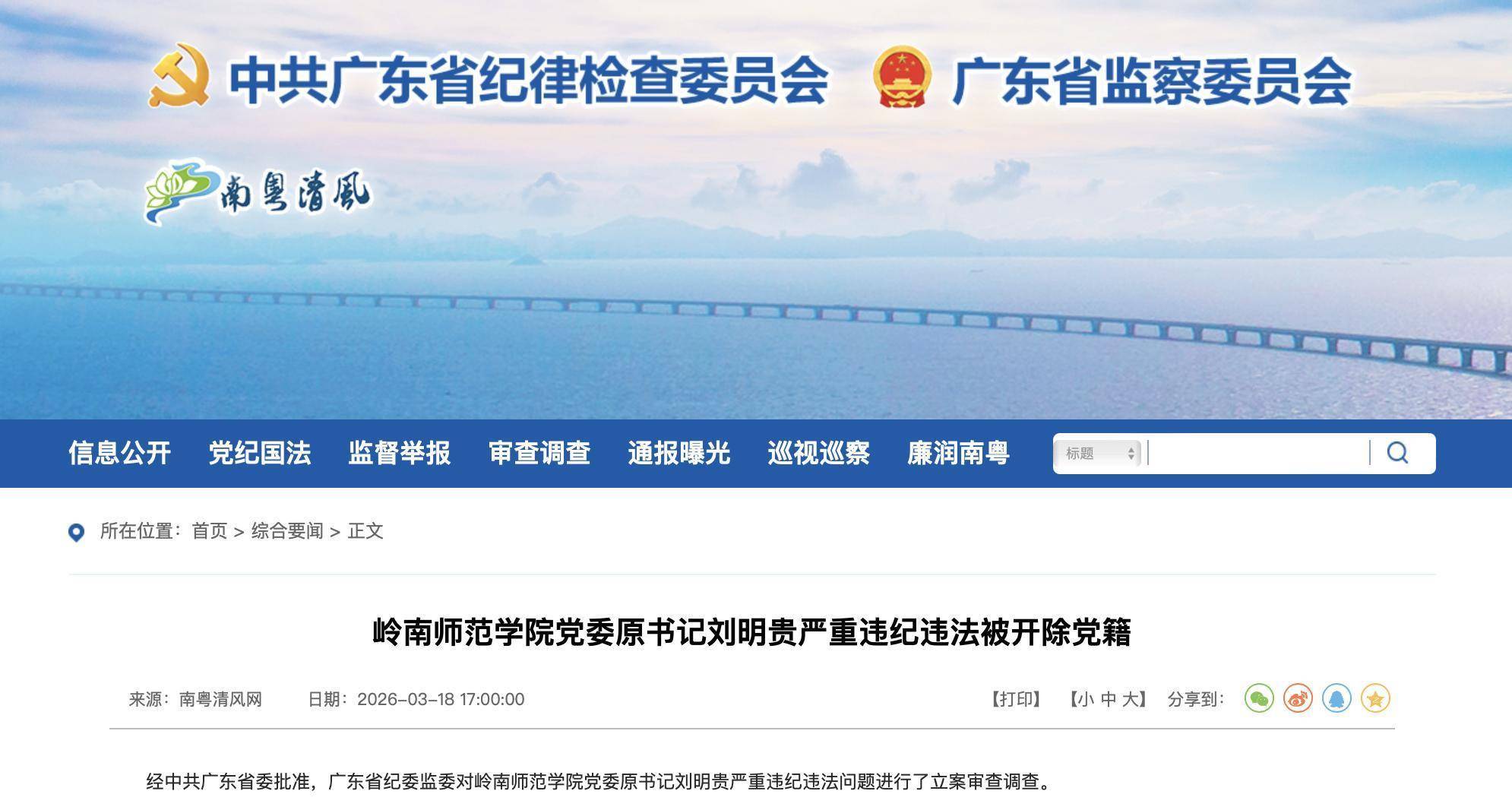广东省纪委监委官网截图